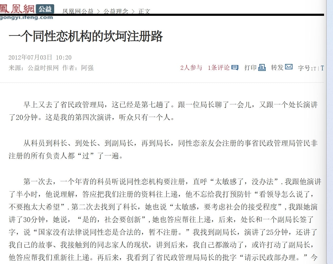虽然最终没有注册成功,但如今回想起整个互动过程,心里仍然觉得非常温暖。那些年,广东行政机关的办事作风,真的值得点赞,不是一推了之,而是为我们的注册问题认真讨论、反复研究。后来我听说,“同性恋亲友会要注册”这件事,前后上过三次民政厅的专题讨论会。