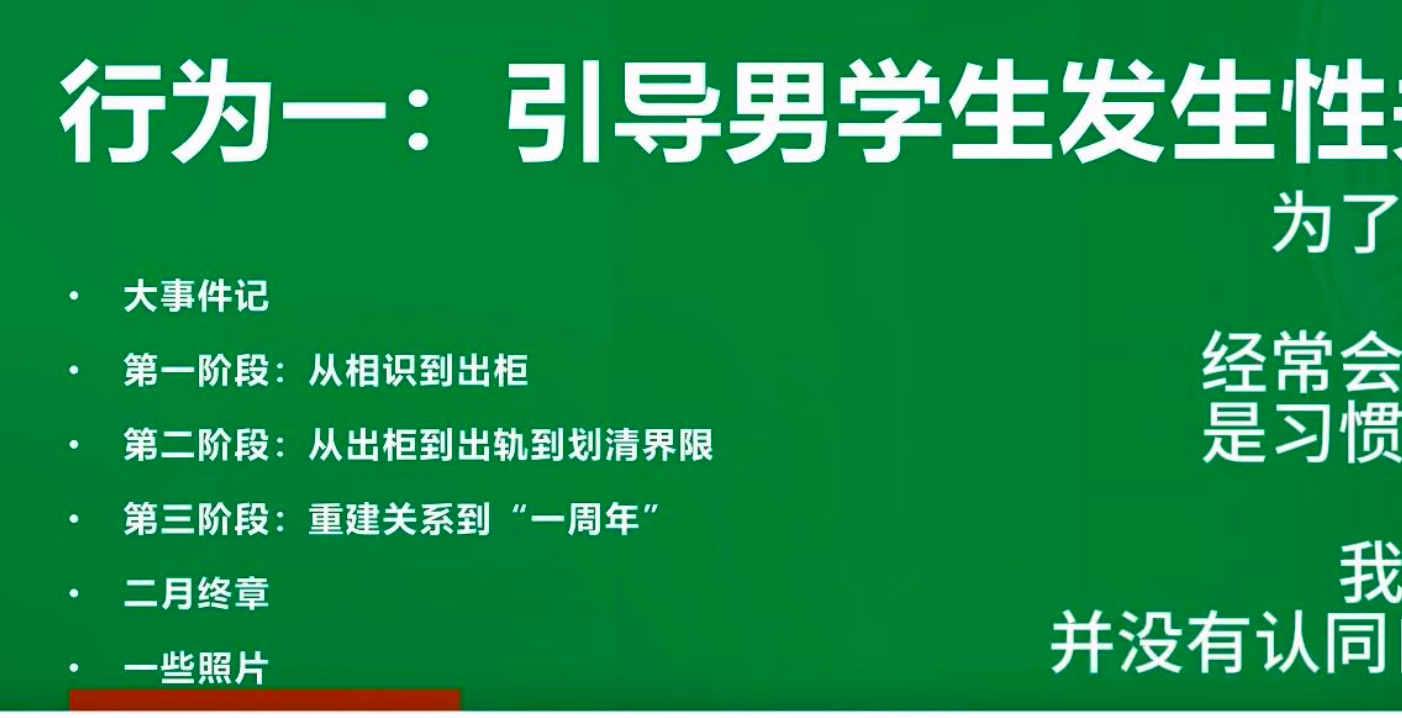 根据PPT内容,导师在交往早期便向这位学生坦白了自己的性倾向,能够向学生出柜,单就这一点我认为是值得肯定的,导师至少对这位举报他的学生做到了基本的坦诚的。作为成年人,学生有权选择接受或拒绝这种关系,而他并未拒绝。因此,这起事件谈不上是猥亵或强迫,而是双方在情感关系中的选择与互动问题。